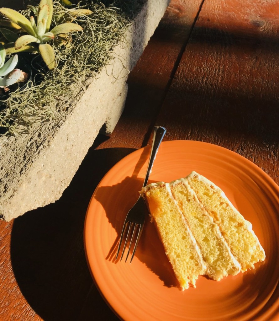 So what do you end up with? A sliding, uneven, gooey Mandarin Orange Cake that tastes remarkably awesome.
