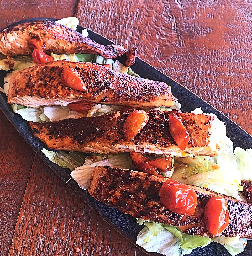 I try to keep salmon in the freezer for days just like this, it thaws quickly, needs only a bit of seasoning rubbed on (I love the Table Mountain Seasoning from Savory Spice), and then a quick cook on both sides in a cast iron skillet (use butter please). After about 3 minutes per side I like to place the skillet in a 350 degree oven for about 3 more minutes to cook it through because this girlfriend is not a fan of raw fish.