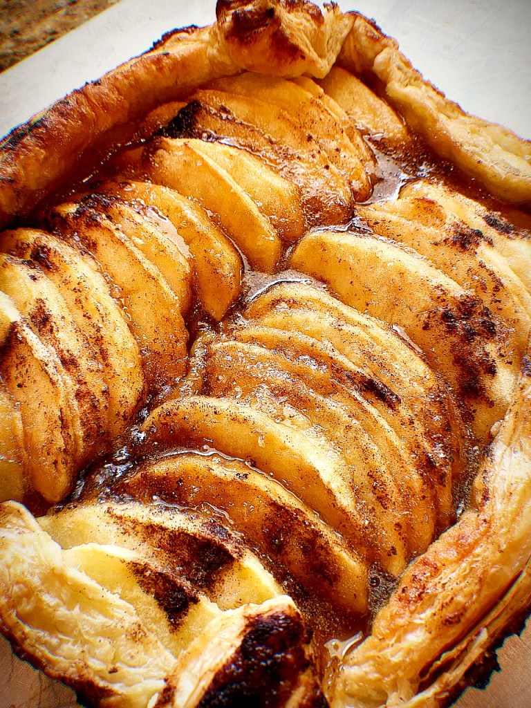 Peel and slice the apple and toss the sliced with the flour to coat. Arrange the apples on the pastry (be creative!) and then fold the edges of the pastry up about an inch all around.